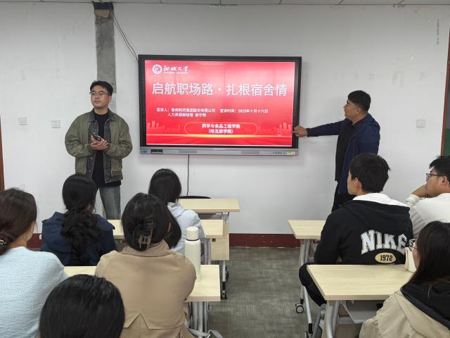 张守明围绕鲁南制药的岗位体系、薪酬结构与人才培养机制展开了系统介绍。他结合企业智能化生产车场的实际案例,生动阐释了行业技术发展的最新趋势,并建议同学们尽早关注产业变革方向,扎实学好专业知识,筑牢职业发展的基础。同时,他也提醒同学们应提前树立职业规划意识,理性分析自身兴趣与优势,在考研深造与直接就业之间做出适合个人发展的选择。学生纷纷表示,此次分享会,不仅清晰了解了鲁南制药的岗位需求与薪资福利,更解开了考研与就业选择的困惑。