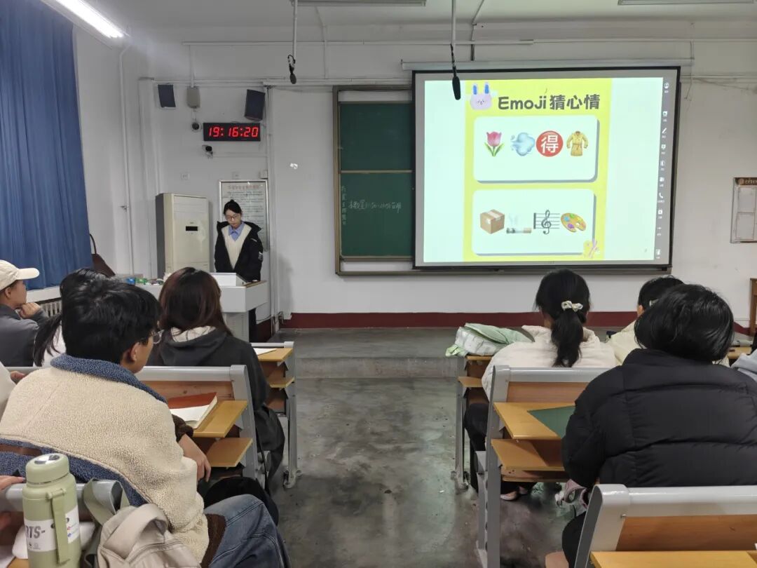 活动伊始,卜晓庆以“情绪的面貌”为切入点,系统讲解了情绪的基本类型及特点,引导学生识别和感受自我情绪,接着通过介绍情绪ABC理论,提供了缓解不良情绪的方法,帮助学生转变认知方式从而减少不良情绪的产生。随后,卜晓庆组织了emoji猜四字成语的互动小游戏,激发起学生参与的热情,现场气氛热烈。同时,卜晓庆围绕“你的情绪”、“产生该情绪的对应支撑依据”和“下一步应该转变的情绪方向”三个方面,指导学生制作情绪手账本,引导他们感知近期的不良情绪,助力情绪疏解与心理调适。活动结束后,学生纷纷表示,本次活动帮助他们更直观地理解了情绪,也为今后独立应对情绪问题提供了有效方法,缓解了自身的紧张与焦虑。