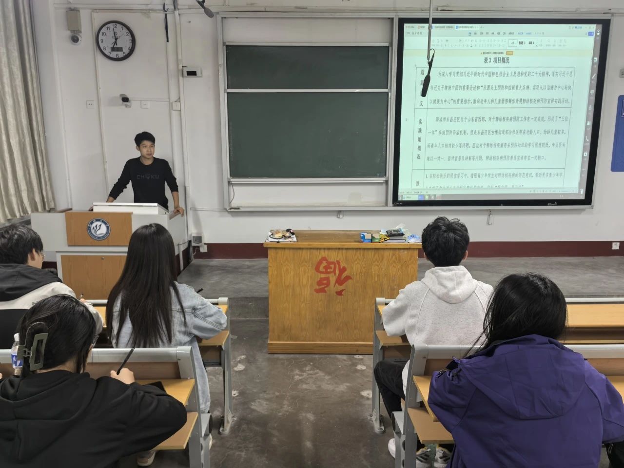 王明磊通过讲述自己的亲身经历及团队假期社区实践开展情况,从社区实践标题、社区实践背景与目的、社区实践过程、社区实践结果等方面重点讲解,接着对学生们提出的疑问进行详细解答,教育引导学生们学习如何制定社区实践活动计划,确保社区实践活动的顺利实施。现场的学生干部纷纷表示未来将会积极参加社区实践,锻炼分析问题、解决问题的能力,提高自己的实际工作能力,充分发挥实践活动的教育价值。