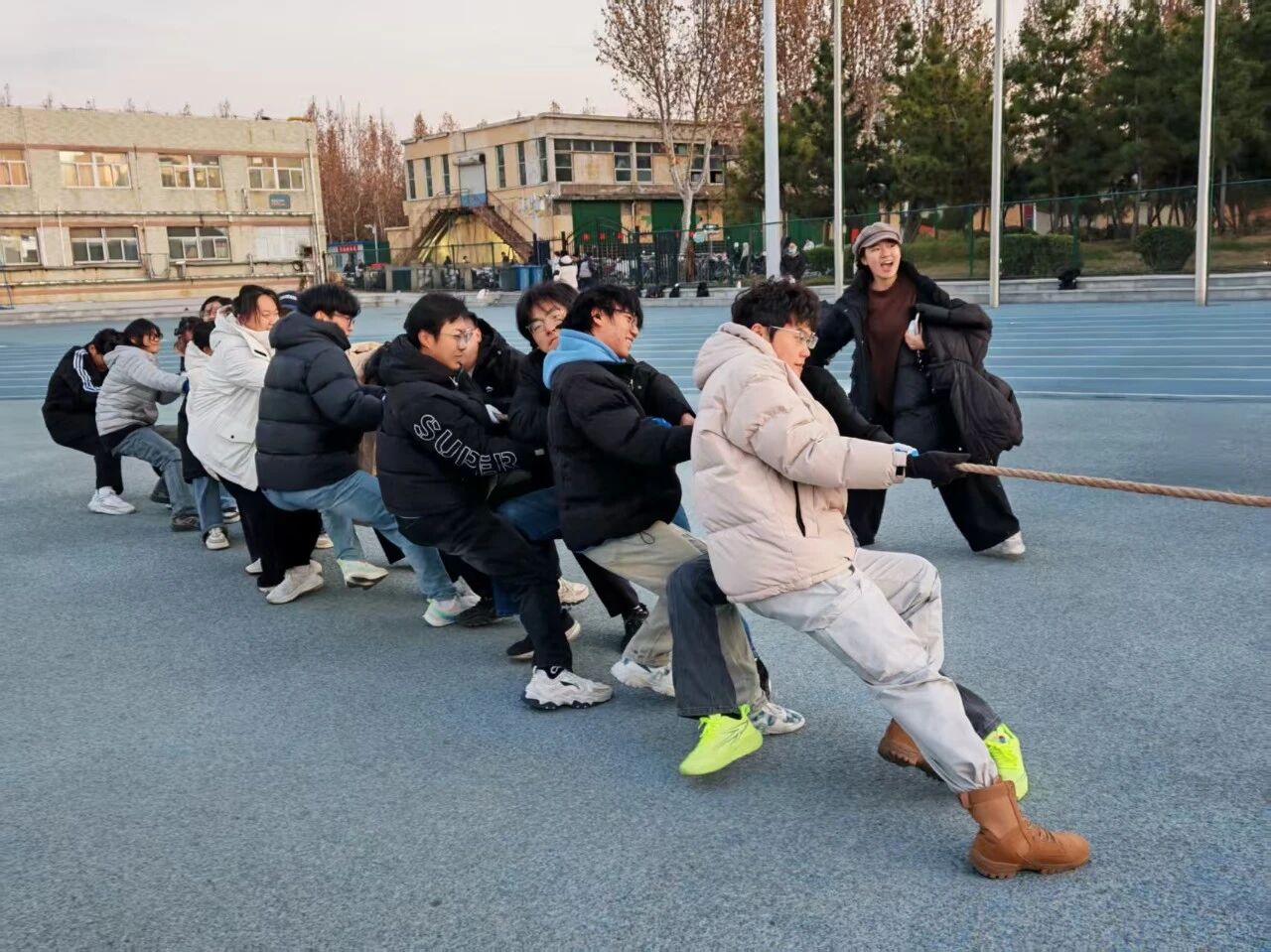 为丰富学生课余生活,培养学生的团队协作意识,12月4日,我院于田径场举办“聚力杯”拔河比赛,2025级学生积极参与其中。