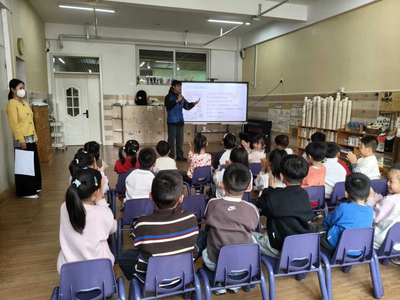 活动伊始,团队成员向小朋友介绍了流感的发病原因、传播途径和常见症状,并结合动画演示、案例分析讲解了预防流感的意义,加强了小朋友对流感的认识。随后,团队成员围绕七步洗手法的标准流程与科学原理展开讲解,通过动作示范推动小朋友养成勤洗手、洗好手的良好卫生习惯。接着,团队成员带领小朋友们制作了以“消灭病毒”为主题的手撕画,有效提升了小朋友的团队协作能力和动手能力。活动结束后,幼儿园负责人表示,此次活动向小朋友们普及了流感预防的科学知识与健康防护技巧,助力小朋友们树立了正确的健康意识。
