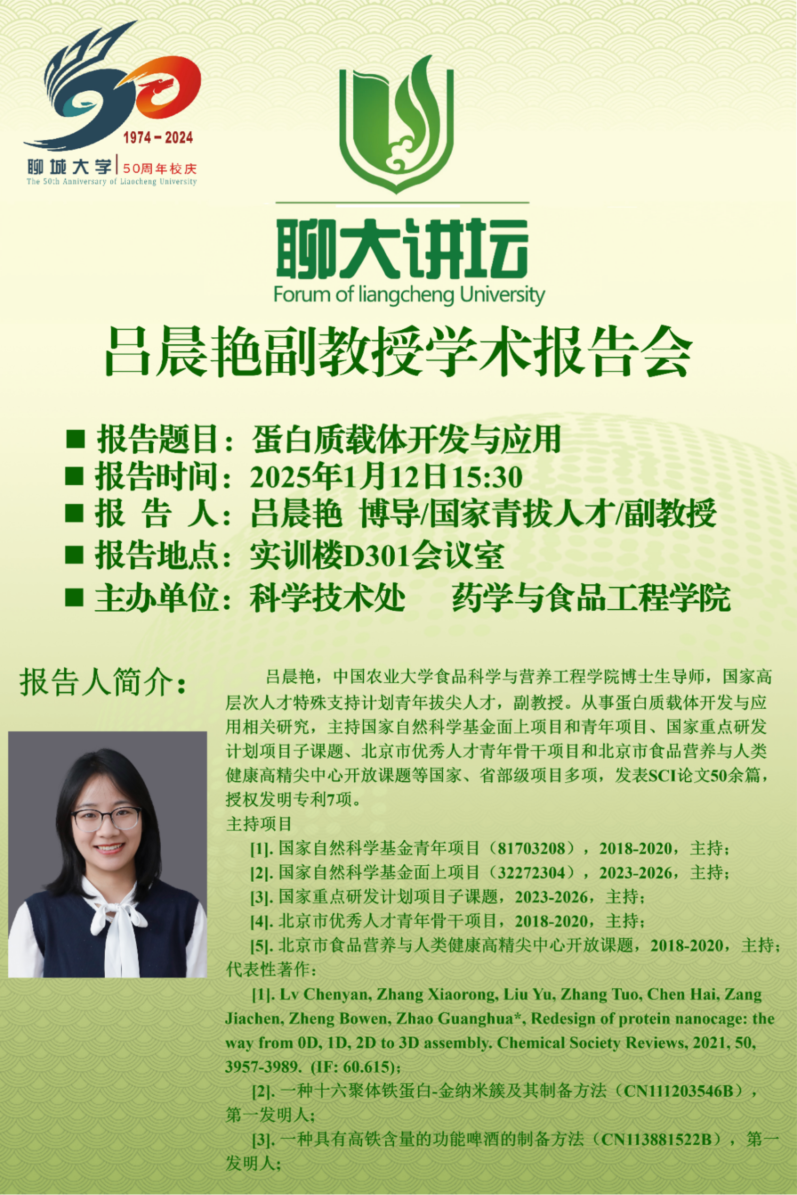 中国农业大学食品科学与营养学院吕晨艳研究员应邀做客“聊大讲坛”