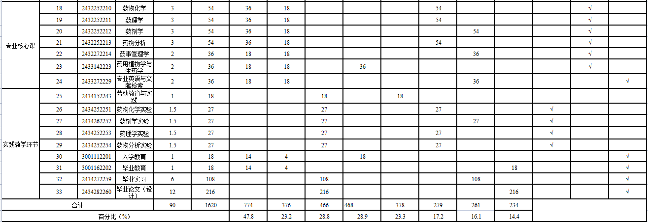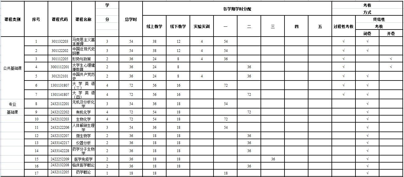 韦德国际bv1946高等学历继续教育药学专业“专升本”办学形式为“非脱产”,灵活采取线上线下相结合的教学方式,缓解在职学员的工学矛盾。教学课程安排如下: