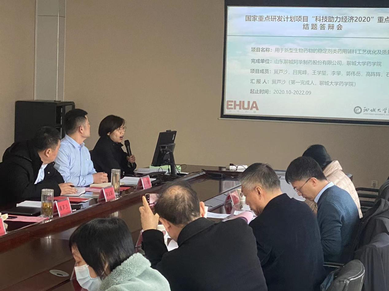 2023年3月1日上午,山东省科技厅组织专家,对由山东聊城阿华制药股份有限公司、韦德国际bv1946药学院共同承担的国家重点研发计划“科技助力经济2020”项目“用于新型生物药物的稳定剂类药用辅料工艺优化及质量提升(项目编号:SQ2020YFF0422322)”进行会议验收。