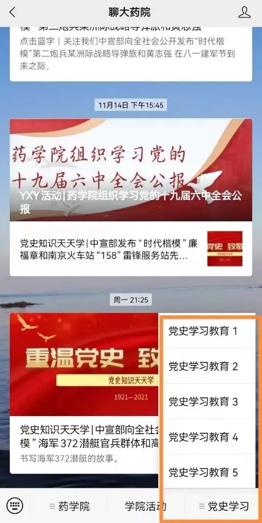 截至目前,学院共推送党史学习教育新闻动态41条、党史故事100讲,党史英雄人物142名,时代楷模32人,党史知识158篇,总阅读量达8000余人次。