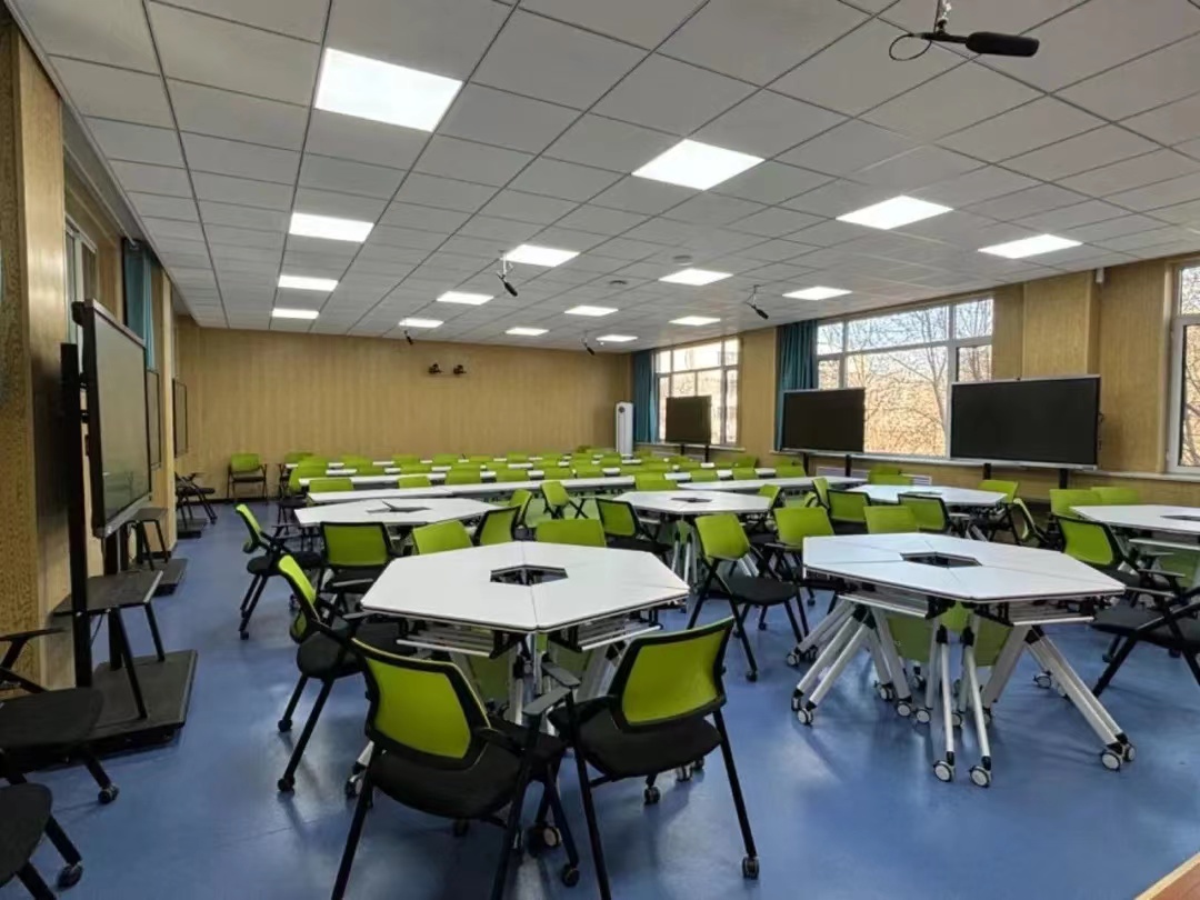 近三年,学校投入资金建设适应不同教学需求的智慧教学设施,建成智能多媒体教室8间、智慧教室1间。形成集“智慧教学、标准化考场、智能管控、远程听评巡课”一体的现代信息化教学新环境。智慧教室运用高清摄像头实现线上巡课评课全覆盖,全面支持线上线下混合式教学改革。