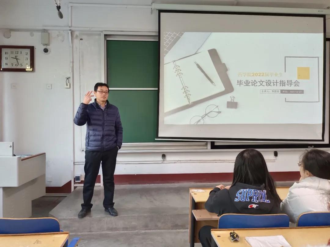 为增强学生对毕业论文设计的了解,提高学生毕业论文的写作质量,12月28日,药学院于韦德国际bv1946东校区2#209举办毕业论文设计指导会,刘国运副院长担任指导教师,2022届全体毕业生参与此次指导会。